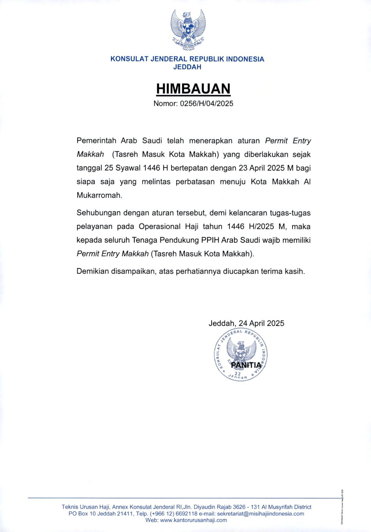 Pemerintah Arab Saudi telah menerapkan aturan Permit Entry Makkah (Tasreh Masuk Kota Makkah)